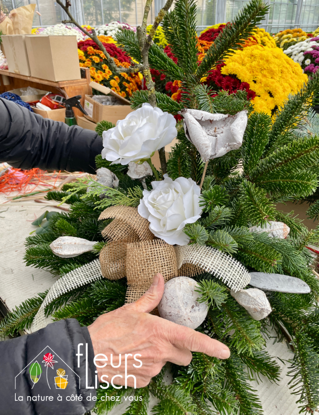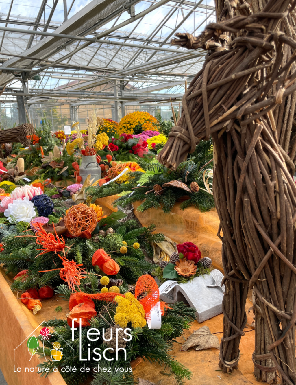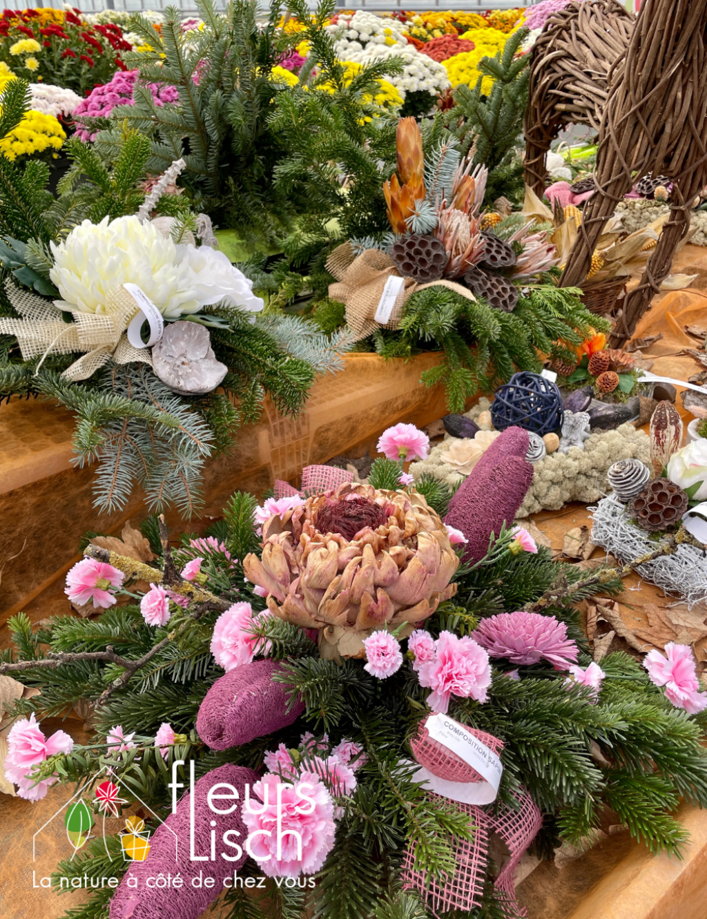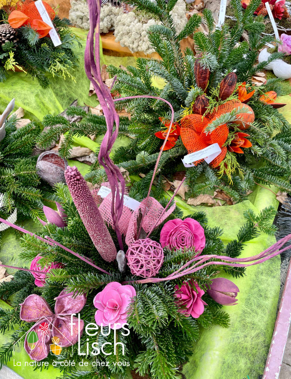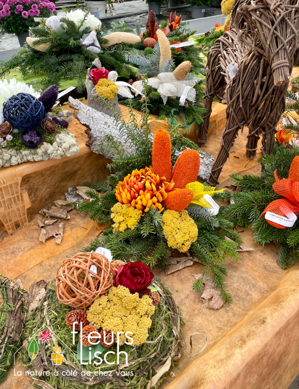 Chaque année, Stéphanie compose de belles compositions d'automne en sapin et mousse d'Islande. Cette année, Carine l'a rejoint pour en créer avec elle. Toutes les compositions sont créées de A à Z dans nos serres en modèle unique. Les composition sont conçues avec une base de mousse naturelle ou de branche de sapins ainsi que d’éléments séchés, plus ou moins colorés.