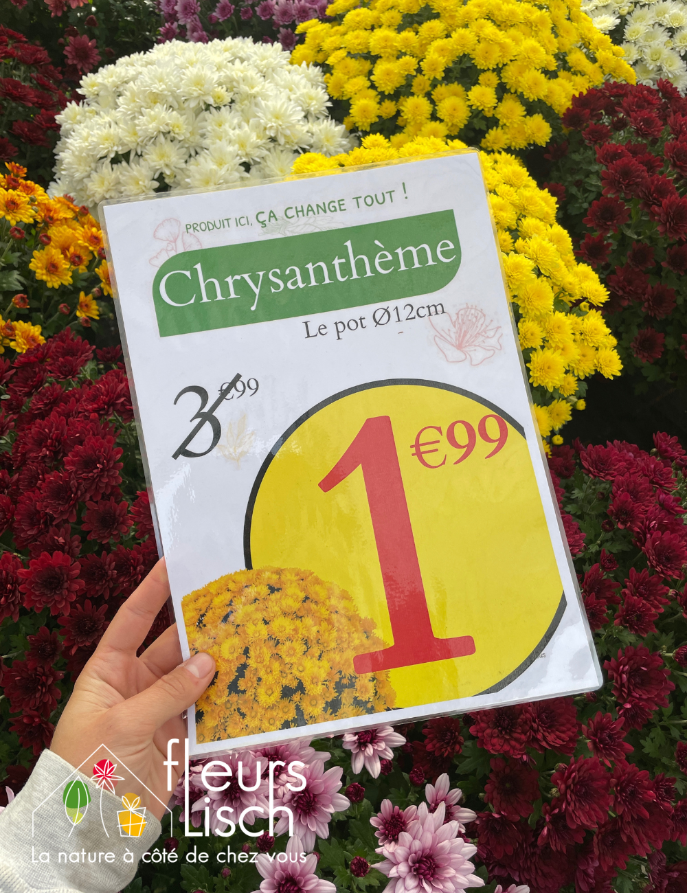 En ce moment, à partir du mercredi 12/10, SUPER OFFRE sur les Chrysanthèmes en pot de 12cm, 1€99 au lieu de 3€99 !!
